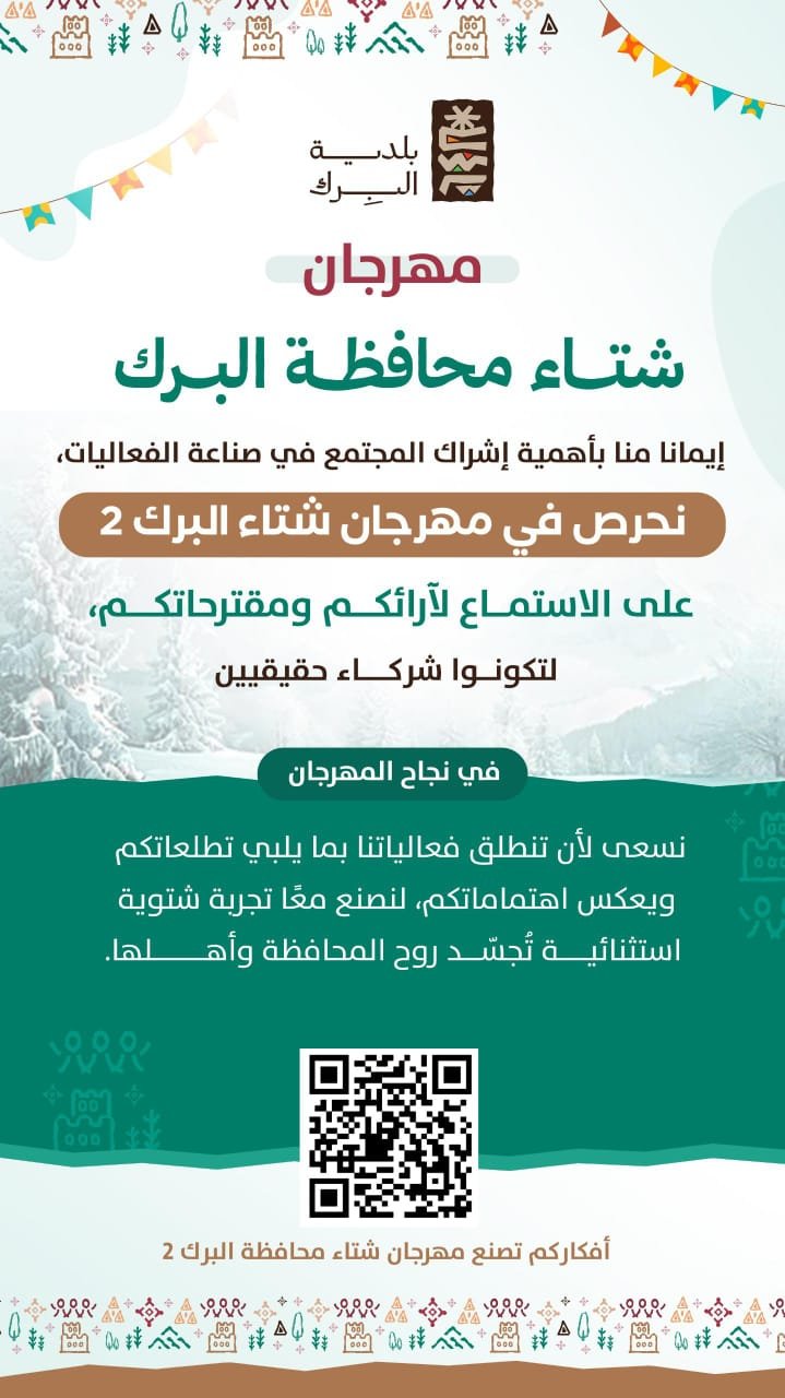 بلدية البرك تدعو الأهالي للمشاركة بآرائهم ومقترحاتهم لإنجاح مهرجان شتاء البرك