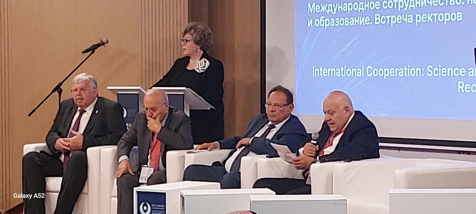 وأشار أن اتحاد الجامعات العربية احد ابرز مؤسسات العمل العربي المشترك ويضم في عضويته اكثر من 450 جامعة عربية يساهم في تطوير منظومة التعليم العالي من خلال مشاريع نوعية مثل التصنيف العربي للجامعات، ونحن اعضاء اتحاد الجامعات العالمية ولدينا شراكة مع الجامعات الروسية ، وقد عقد المنتدى السنوى لرؤساء الجامعات العربية والروسية 4 مرات ، وساهم في ترسيخ اسس التعاون الاكاديمي والثقافي كما ساهم في زيادة اعداد الطلاب الروس بالجامعات العربية الي اكثر من 2000 طالب في مصر وحدها، وهناك 200 اتفاقية تعاون اكاديمي بين الجامعات الروسية والعربية، كما تم نشر اكثر من 800 ورقة بحثية مشتركة وفق بيانات Scopus لعام 2022 في مجالات متقدمة مثل الذكاء الاصطناعي وعلوم المواد والطب، كما زاد اعداد الطلبة العرب في الجامعات الروسية لاكثر من 50 الف طالب”.