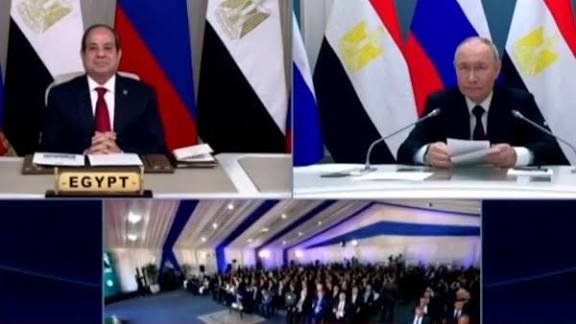 الرئيس السيسي ونظيره الروسي فلاديمير بوتين يشاركان عبر الفيديو كونفرانس في مراسم تركيب وعاء المفاعل النووي بمحطة الضبعة.